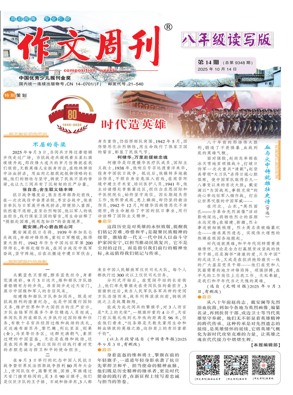 创刊于1980年11月的《作文周刊》,由中国写作学会山西省分会主办的面向全国公开发行的教学辅导类专业报纸。《作文周刊》秉承“一切为了读者,为了一切读者”的办刊宗旨,不仅着眼于培养小作家,更致力于从素质教育的角度办报,配合各级各类学校搞好写作教学,为学生提供一个发表习作的园地,给语文教师提供一个交流教学经验、研讨写作理论的平台。