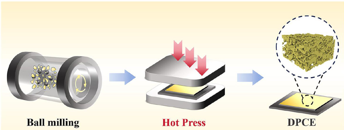摘要:构建具有优异离子传输特性的高载量电极,对于通过电化学方法从卤水中高效提取锂至关重要。本文报道了一种无溶剂热压策略,用于制造结构优化的LiFeP O4 电极,该电极具有优异的电化学性能和机械稳定性。通过采用蚀刻钛箔作为集流体,并引入多壁碳纳米管作为导电添加剂,成功构建了三维互连的多孔结构,从而加速了离子扩散并提高了电极结构的完整性。基于Micro-CT和Avizo分析的结果表明:与传统湿法涂覆电极相比,热压电极具有更高的孔隙率、更低的曲折度以及更连通的离子传输通道。电化学测试表明,热压电极具有更高的锂离子扩散系数和更低的电荷转移电阻。在优化条件下,质量负载为 19.4mgcm-2 的热压电极在Uyuni模拟卤水中经过15次循环后,锂提取容量达到 4.13mgcm-2 ,纯度为 93.91% 。本研究建立了一种可扩展的热压方法,并阐明了其在锂选择性电化学分离中的基本物理化学优势。
