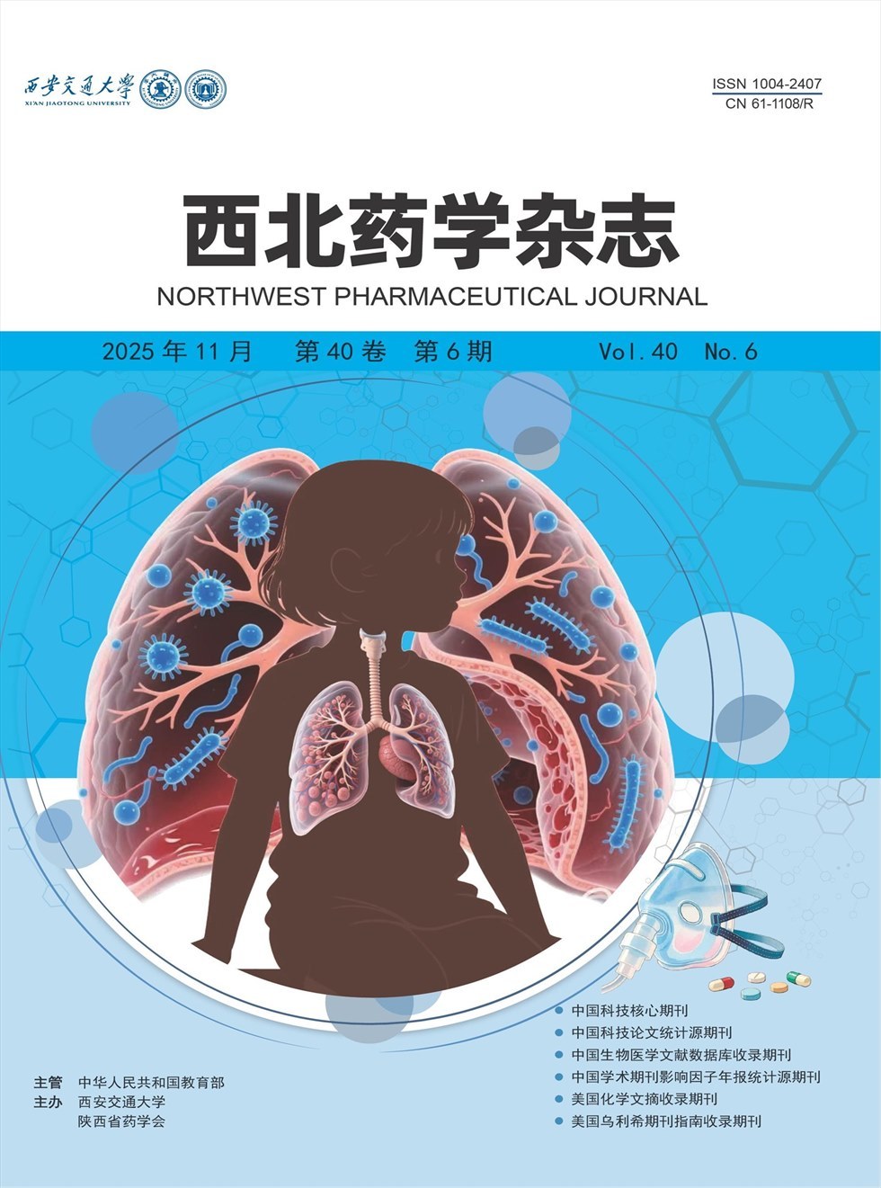 《西北药学杂志》是由中华人民共和国教育部主管、西安交通大学和陕西省药学会主办、国内外公开发行的综合性药学学术期刊, 1986年3月创刊。 办刊宗旨:理论与实践相结合、提高与普及相结合、新颖性与实用性相结合,既报道药学研究新成果,也传播药学新知识、新技术。《西北药学杂志》以弘扬和发展我国秦巴山区优势药物资源及西北地区特有的民族药为特色,为药学工作者提供学术探讨和交流的园地。