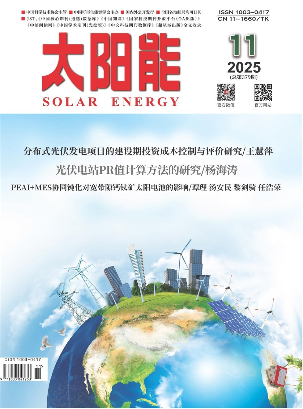 《太阳能》创刊于1980年,月刊,是由中国科协主管,中国可再生能源学会主办,《太阳能》杂志社有限公司出版,国内外公开发行的国家级可再生能源专业科技杂志。内容定位于“广义太阳能”,办刊宗旨为“加强学术交流,推动太阳能科技创新,促进实现太阳能产业化、市场化应用发展”。